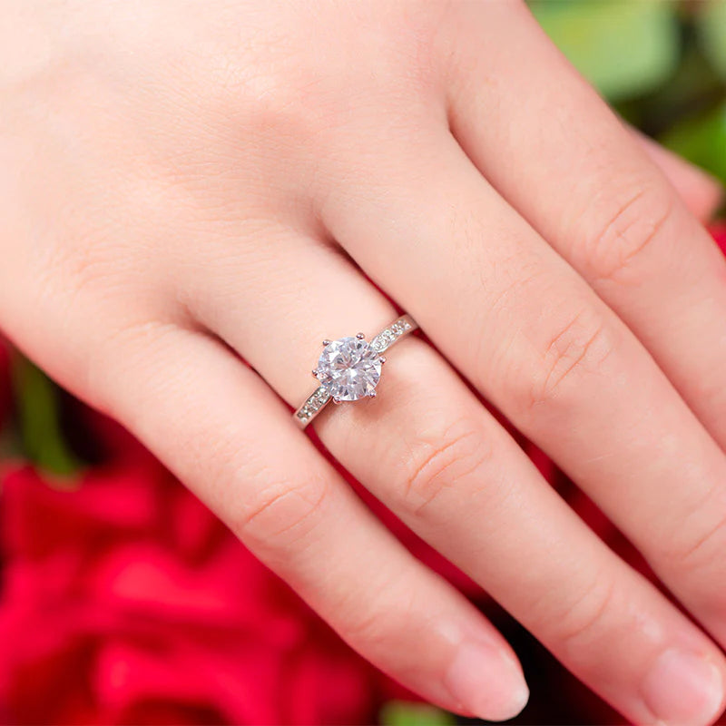 An engagement ring is a symbol of love, commitment, and devotion. It represents the intention of two people to spend the rest of their lives together in a committed relationship. The ring's circular shape represents eternity, as there is no beginning or end to a circle. This is meant to represent the endless love and commitment that the couple shares. The use of precious metals and stones signifies the value and importance of the relationship.