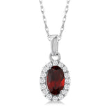10Kt White Gold Halo Birthstone Pendant with 5x3mm Oval Garnet and .07cttw Natural Diamonds (Color H-I, Clarity SI2) on an 18" Chain