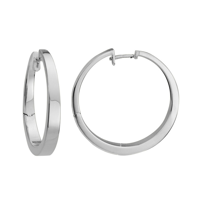 Lasker Lux14Kt White Gold 2.2 x 4mm Tapered Hinged-Back 2.2 x 4mm x 32mm Diameter Hoop Earrings