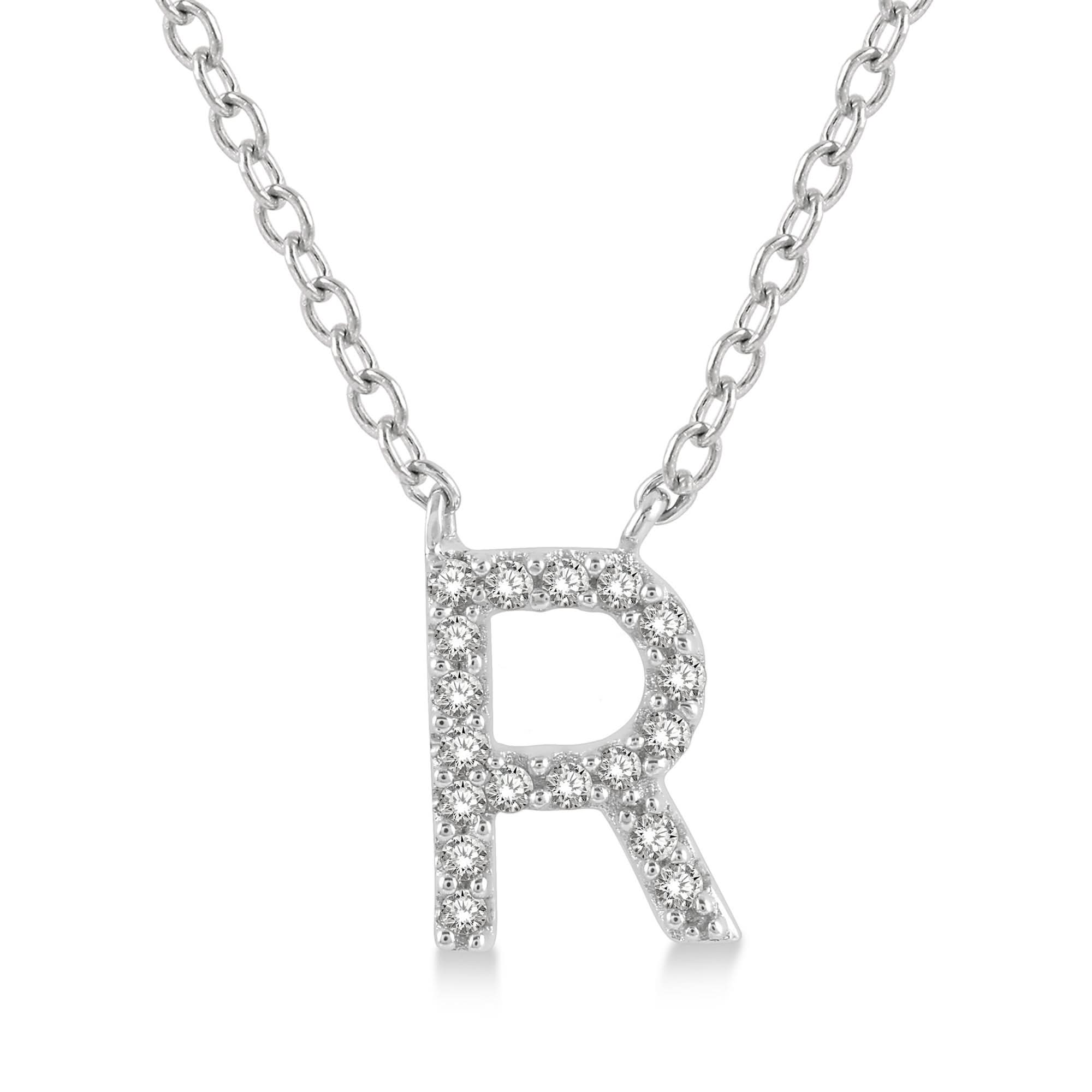 18" Lasker Petites 10Kt White Gold 'R' Initial 0.05cttw Diamond Pendant