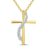 10Kt Yellow Gold Wave Cross Pendant With .10cttw Round Diamnonds On 18" Cable Chain