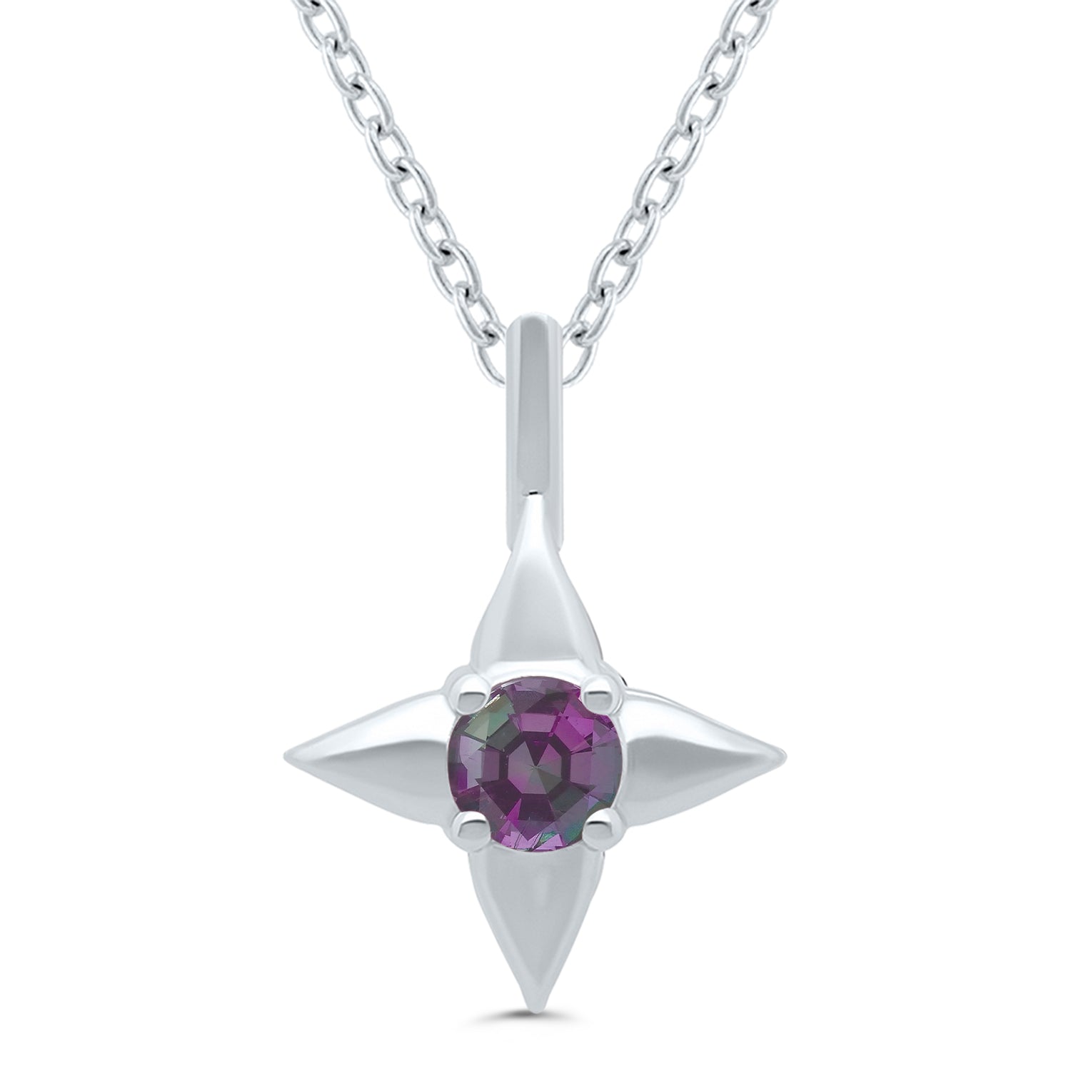 Star of Hope Sterling Silver June Birthstone Pendant with 3mm Round Lab-Grown Alexandrite on 18" Chain