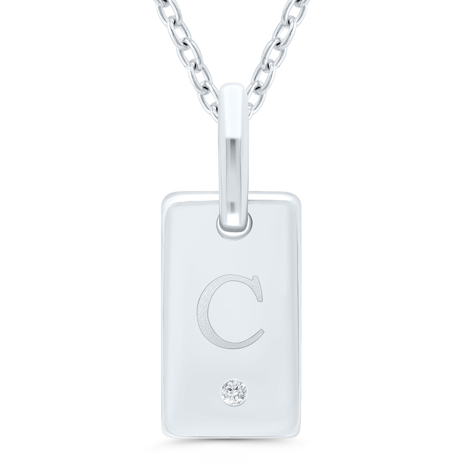 Sterling Silver ID Tag 'C' Pendant with 0.01ct Diamond Accent on an 18" Cable Chain