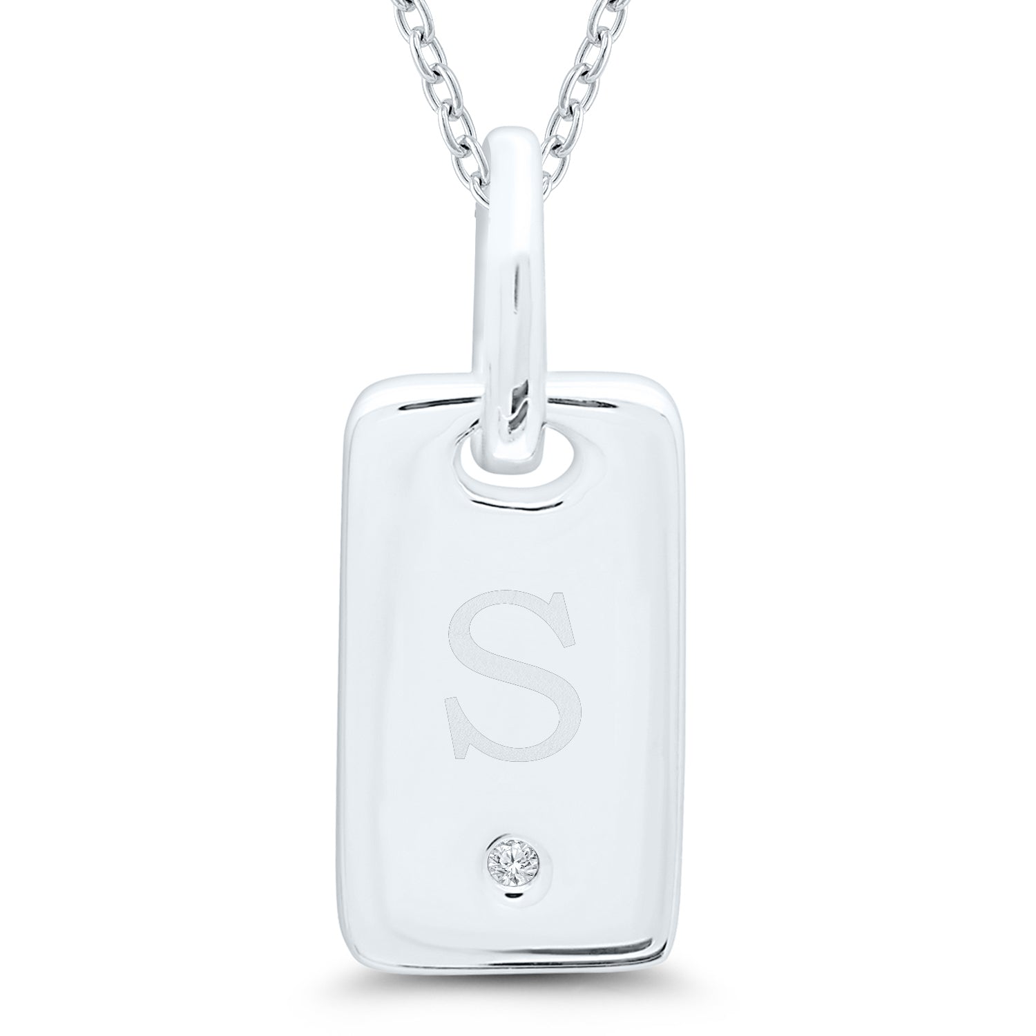 Sterling Silver ID Tag 'S' Pendant with 0.01ct Diamond Accent on an 18" Cable Chain