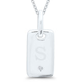 Sterling Silver ID Tag 'S' 0.01ct Diamond Accent Pendant